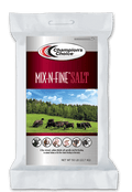 Champion's Choice Mix-N-Fine Salt is Fine Rock Salt or Fine Solar Kiln Dried Salt that is suitable for feed mixing or free choice feeding. This salt product is intended for beef cattle, dairy cows, horses, goats, pigs, poultry and sheep. This product may contain free flow additive to ensure easy mixing and long term storage.