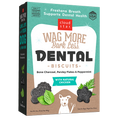 Perfect as a reward or supplemental treat, Wag More Bark Less dental biscuits make fresh breath and dental support easy and tasty.