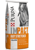 Get consistent nutrition for your horse with Purina Impact Hay Stretcher. With high-quality roughage built in, it's the perfect replacement for inconsistent hay or pasture. When hay or forage is limited, Hay Stretcher is the ideal feed to replace forage to supply horses with a high quality fiber source to keep their weight, growth, and health in check.