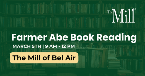 Join us at The Mill of Bel Air on March 5 from 9:00 AM to 12:00 PM for a special Chick Day guest appearance by local childrenâs author Farmer Abe!