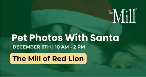 Celebrate the season with Pet Photos with Santa at The Mill of Red Lion on Saturday, December 6 from 10 AM to 2 PM.