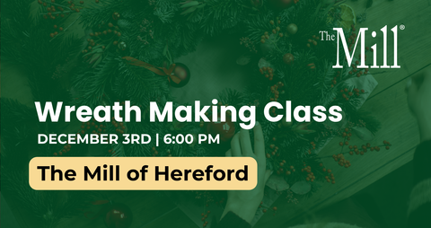 Get into the holiday spirit with a Wreath Making Class at The Mill of Hereford on Tuesday, December 3 at 6 PM.