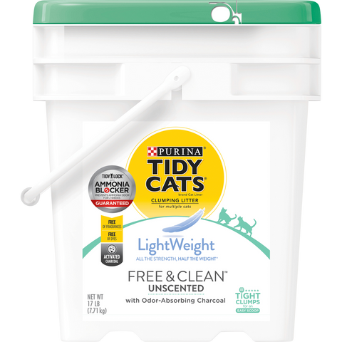 Tidy Cats® Free and Clean Low Dust Lightweight Clumping Cat Litter with Ammonia Blocker – Unscented, 17 lb
